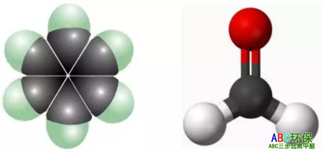 一类致癌物:苯(左图)、甲醛(右图)的分子结构模型(作者供图)