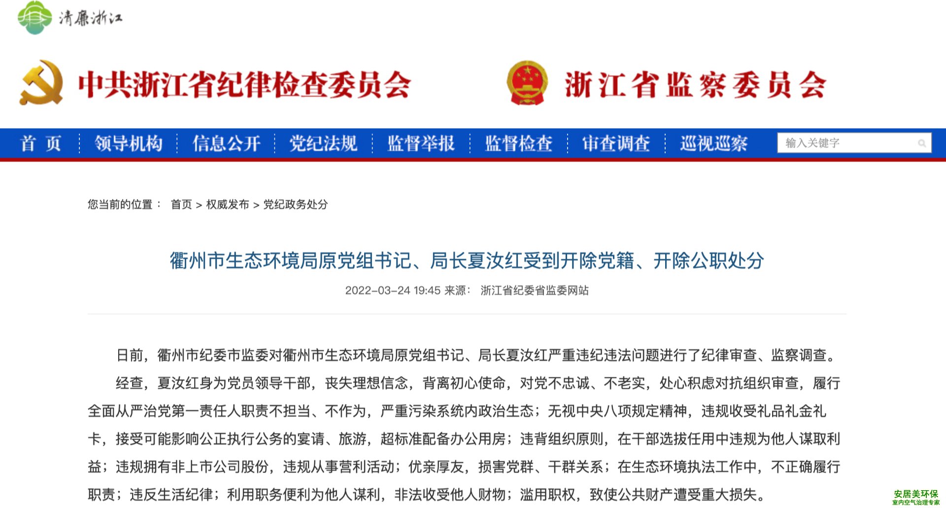 【九江除甲醛】衢州市生态环境局原“一把手”